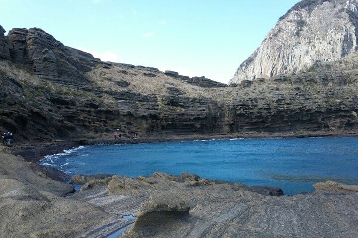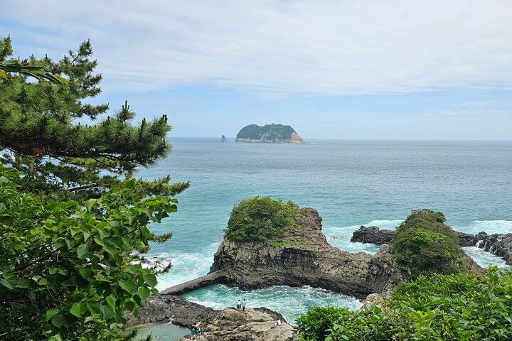 A cool waterfall and a green tea field with delicious ice cream and cake..Walking along the Yongmeori Coast, the beautiful sea color and waves make you feel at ease.