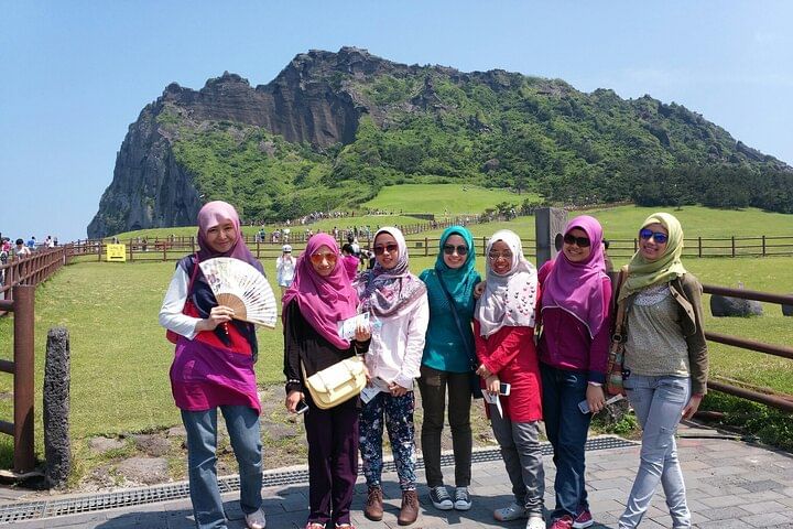 On the last day of Jeju, explore Seongsan Ilchulbong Peak, a UNESCO site, a famous attraction in Jeju, and visit Jeongbang Falls, one of the three major waterfalls in Jeju. and You can listen to Jeju locals explain the culture of Jeju and try Omija tea, a Jeju local product, at the Folk Village. You can see the surrounding scenery while walking on Sangumburi, one of the craters in Jeju, and finally, you will see you off at Jeju Airport.