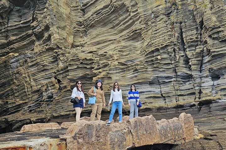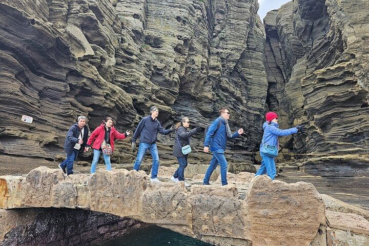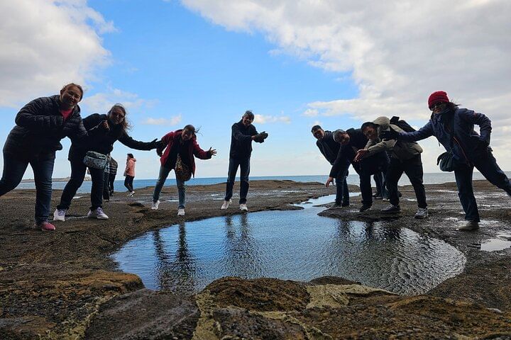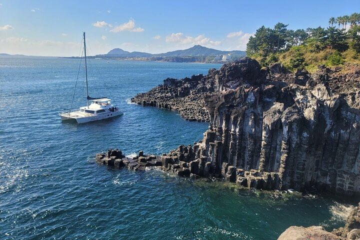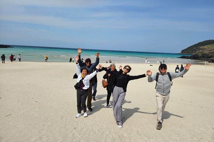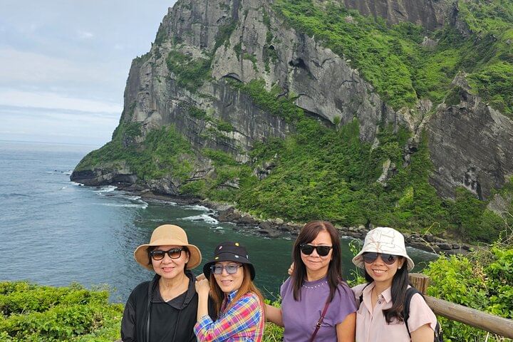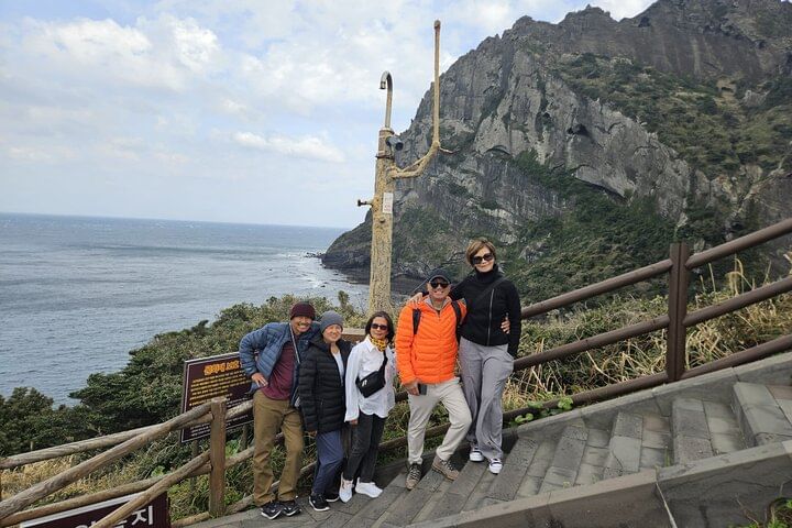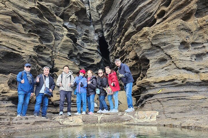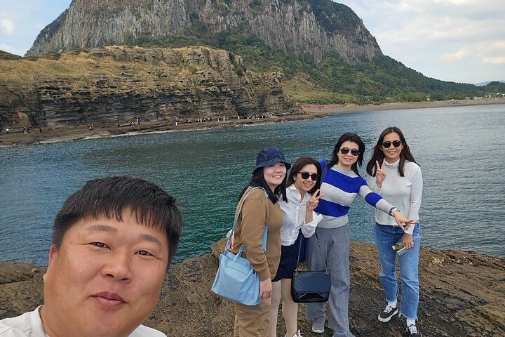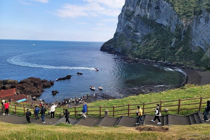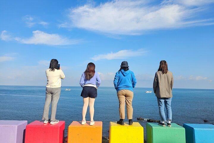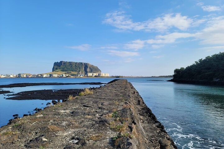 If you start your tour at the cruise terminal in downtown Seogwipo Gangjeong Cruise Terminal , Go to the Jeongbang waterfall and Oedogae and Seongsan illchulbong AND Gwangchigi Beach/ Seongeup Folk village
