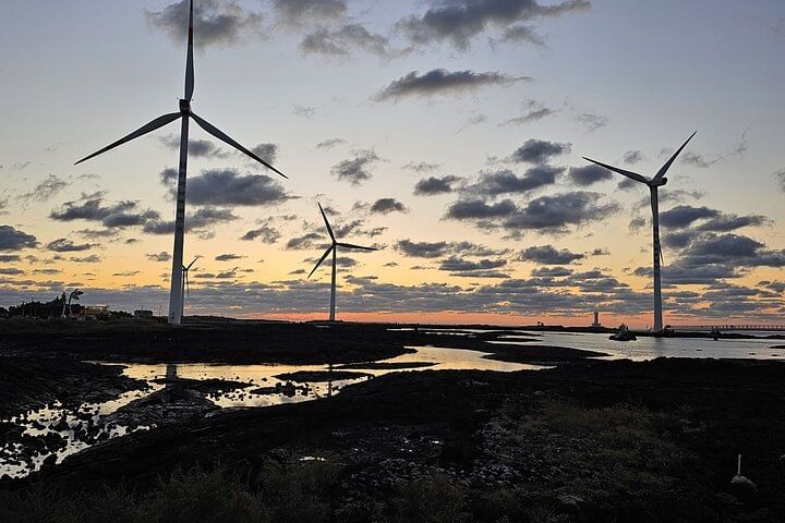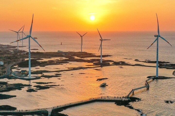 you will go trekking through Osulloc, a vast green tea field, and Jeju Mundoji Oreum, and take a break at Sinhaeng Beach and Aewol Cafe Street in the western region.