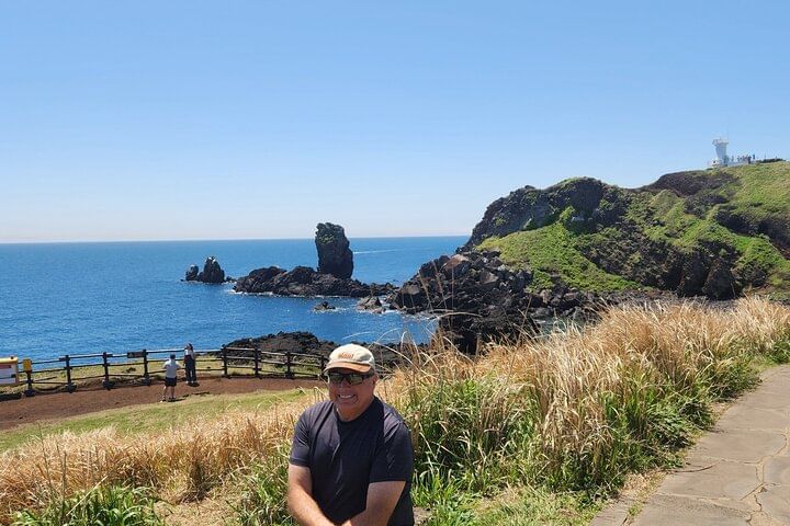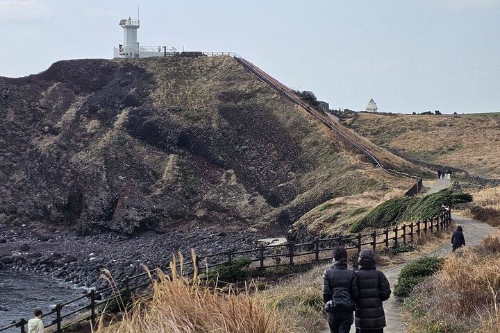 If you walk along the coastline, you will reach the lighthouse. Seongsan Ilchulbong seen from the lighthouse is beautiful.